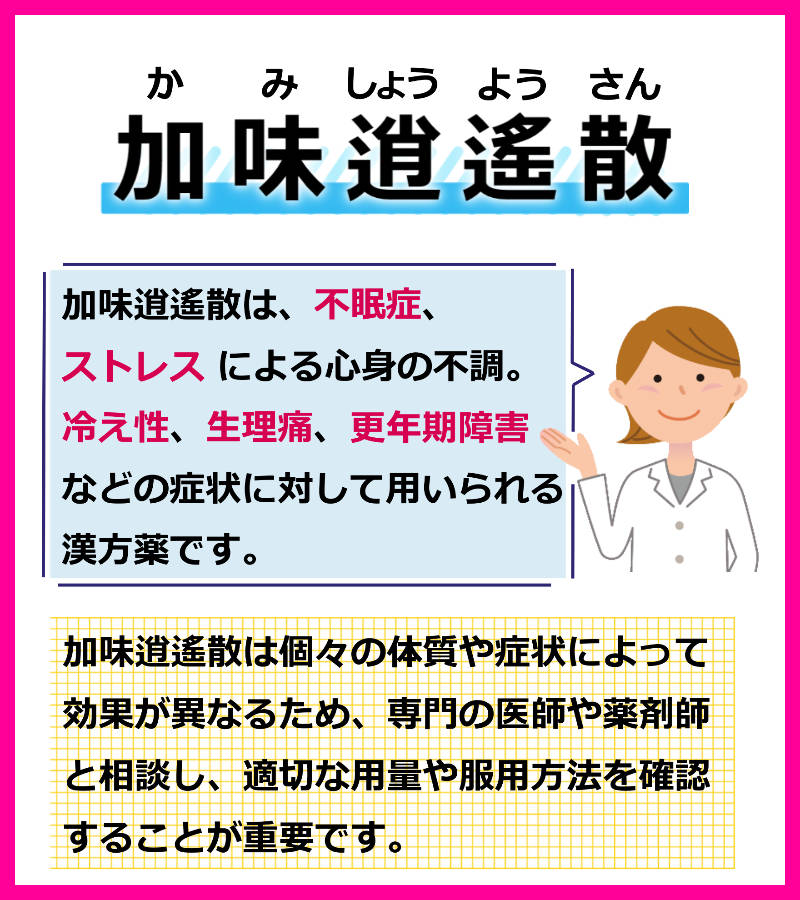 「加味逍遙散」(かみしょうようさん)は、女性特有のホルモンバランスの変化からくる不眠に対して有効なので、更年期世代に人気の漢方です。